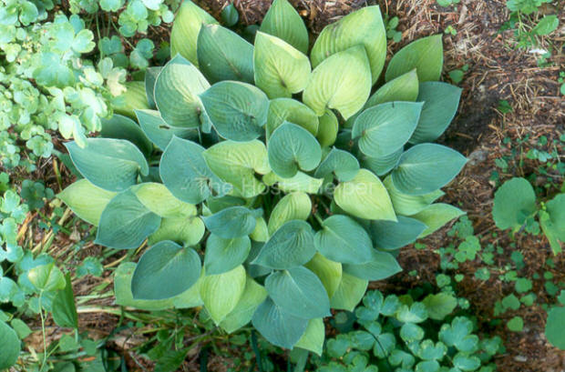 in the illustration. He put divisions of H. 'Blue Edger' and