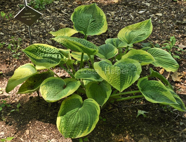 Wade of Wade and Gatton Nursery (Closed 2019) of Ohio registered this sport of H. 'Zounds' in 1999. It has heavily corrugated, thick textured