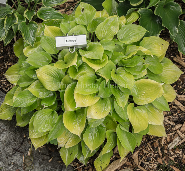 Field Guide to Hostas by Mark Zilis (2014), "Other cultivars introduced from the same cross include 'Azuretini' (blue), 'Bluetini' (blue), 'Bubbatini' (blue), 'Limetini' (gold in spring, then green), 'Martini' (medium green) and 'Saketini' (oddly colored leaves and closed flowers)."