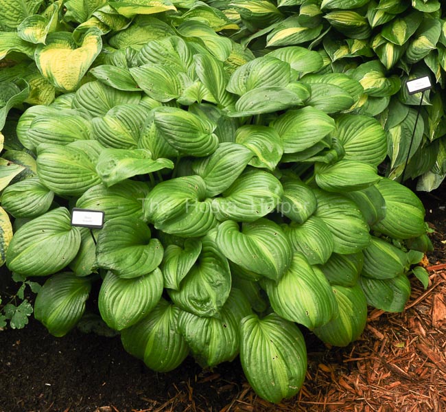 According to The Hostapedia by Mark Zilis (2009), "...distinguishes itself from 'Guacamole' by its much wider margins."