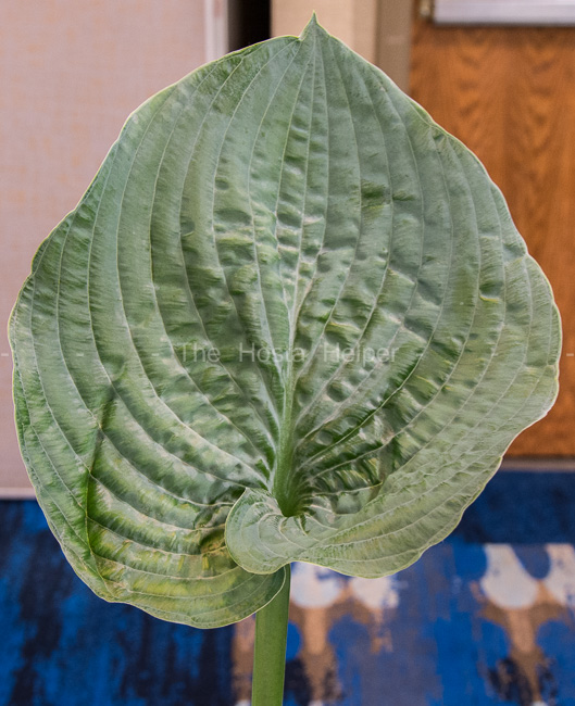 is of unidentified parentage. The leaves are broadly ovate, slightly cupped, moderately to heavily corrugated with a glaucous bloom on top. According to the registration materials: "...semi vase-shaped, with substance, character, and