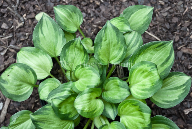 A sport of H. 'Amber Tiara', this plant was originated by Marco Fransen of Fransen Hostas in the Netherlands. It is a small size plant which bears purple flowers from mid-July into August.