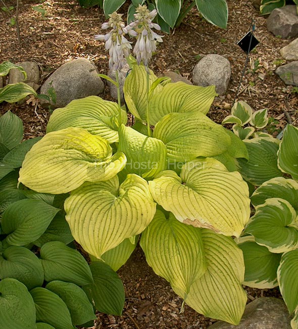 this cultivar is a seedling of H. 'Pin Stripe'. It forms a large size (20