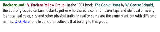 ' in its background. It is a large size hosta with blue-green foliage and a golden-yellow marginal variegation.