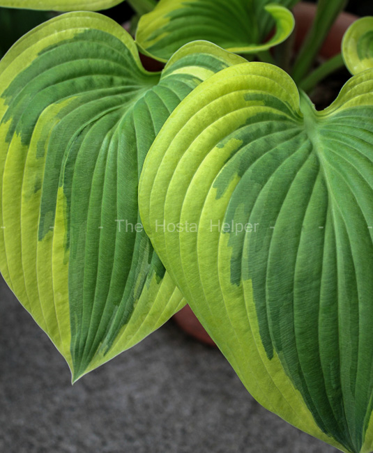 It should not be confused with H. 'Krossa Broad Band' which was once known as H. 'Broad Band'.