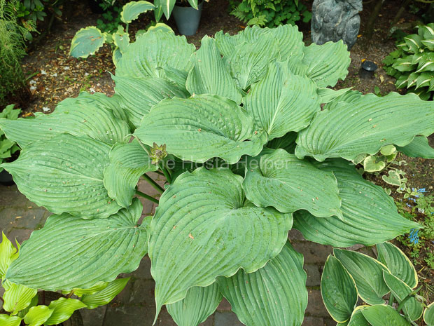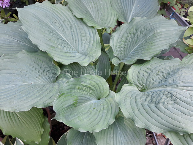 clump of heavily rippled foliage. It bears purple flowers in July and August.
