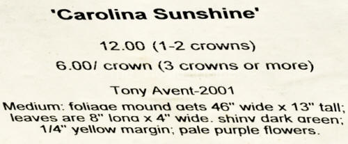 According to The Hostapedia by Mark Zilis (2009), "...the "convention plant" of the 2001 National Convention of The American Hosta Society in North Carolina where it was given to each attendee."