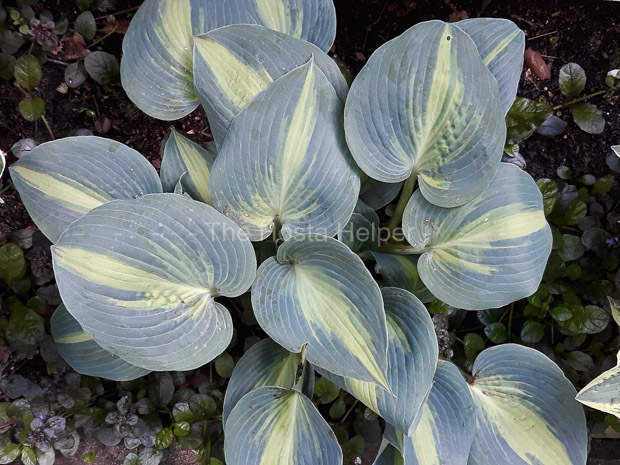 a spread of 28 inches. The blue-green foliage has creamy yellow