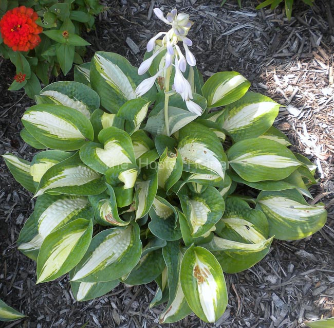 Dr. Dick and Jane Ward of Ohio registered this cultivar in 1999. It has H. 'Pin Stripe Sister' in its otherwise unidentified background . The medium size plant bears pale lavender flowers in July.