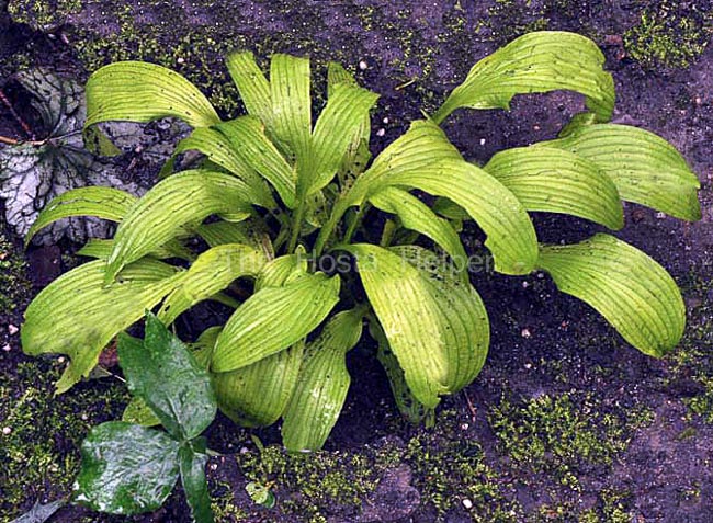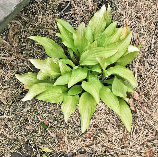 A non-registered seedling selection from Alttara Scheer of Connecticut, this cultivar grows into a small size hosta about 6 inches in height and 15 inches in width. the leaves are smooth and of average substance. Pale purple flowers bloom in August.