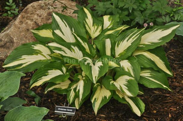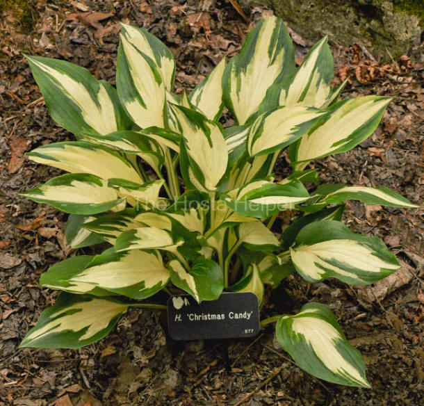 An article by Warren I. Pollock in The Hosta Journal (2006 Vol. 37 No. 2) says, "...'Christmas Candy'...a new hosta discovered by Gert van Eijk-Bos in tissue-culturing 'Night before Christmas'...at the Vitro Westland propagation laboratory in Rijswijk, Holland...How do 'Christmas Candy', 'Night before Christmas' and the old timer 'White Christmas' compare?...all three have pure white leaf centers and dark green leaf borders."