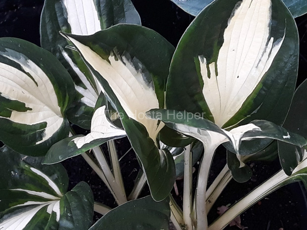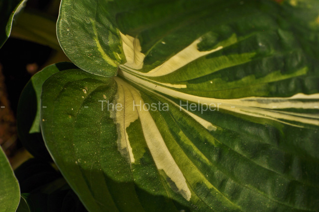 very wide margined version of 'Loyalist'. Unlike 'Clifford's Comet', there are no green speckles in the leaf center."
