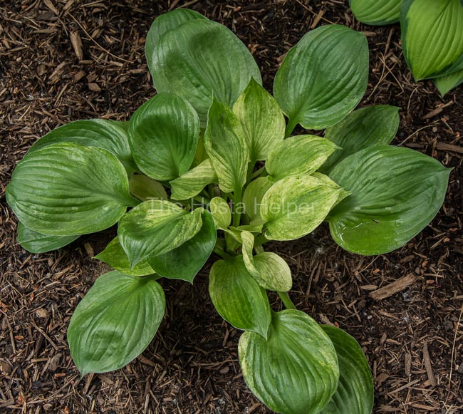 streaked variegation. Medium lavender flowers bloom from mid-July into August. The foliage becomes