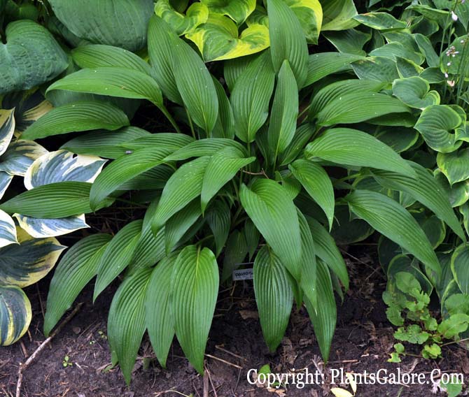 It is a medium size hosta with green leaves and showy