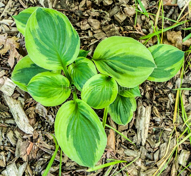 This cultivar which is a tissue culture sport of H. 'Captain Kirk' was registered by Mark Zilis of Illinois in 2010. It is a large size plant that grows about 20 inches in height with a 42 inch spread. The dark green foliage has a creamy yellow marginal variegation. Its leaves are dull on top and glaucous on the bottom, slightly wavy and round at the base. The tubular, pale lavender flowers bloom from mid-July into August.