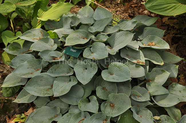 Beth Chatto of England introduced this Tardiana-type seedling in 2002 but it is not registered. This cultivar grows into a medium size hosta over a foot tall and 29 inches wide with pale bluish lavender flowers that bloom in mid-July.