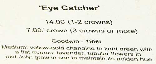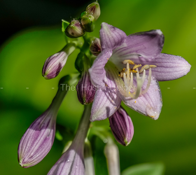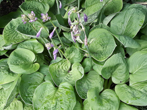 This cultivar is of unidentified parentage and was registered by Randy Goodwin of Indiana in 1996. The medium size mound is 13 inches high and 28 inches wide with cupped, unruly, heavily corrugated leaves. It bears bright purple flowers in July.