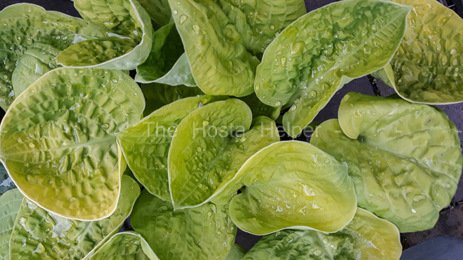 The New Encyclopedia of Hostas by Diana Grenfell (2009) states: "Resembles a golden yellow-leaved H. 'Tokudama' but is much smaller, and the margins remain a slightly deeper gold but there are hints of green in the depths of the seersuckering."
