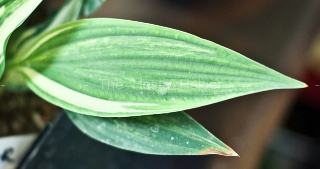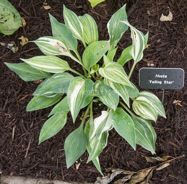This streaked sport of H. 'Dark Star' was originated by Danny Van Eechaute from Belgium. It grows into a medium size hosta about 12 inches in height and 24 inches in width. Lavender flowers bloom in mid-summer.