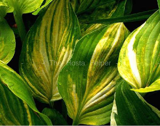 This medium size, non-registered cultivar of unidentified parentage is from Ron Livingston of Michigan. According to a photo on the Hosta Library, it is a green colored hosta with green, yellow and white streaked variegation.