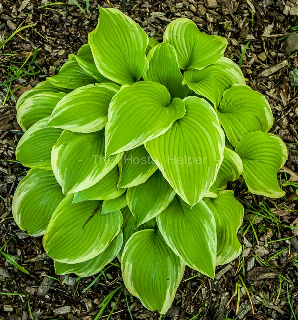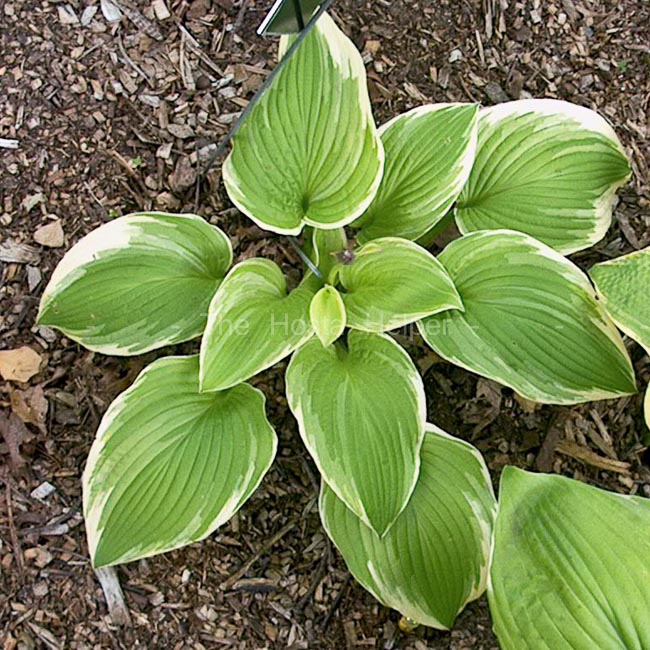 Dr. Ed Elslager of Michigan in 1999, this cultivar is a hybrid of H. 'Pin Stripe Sister' × H. 'Maekawa'. A medium size (17 inches high) mound of chartreuse color leaves