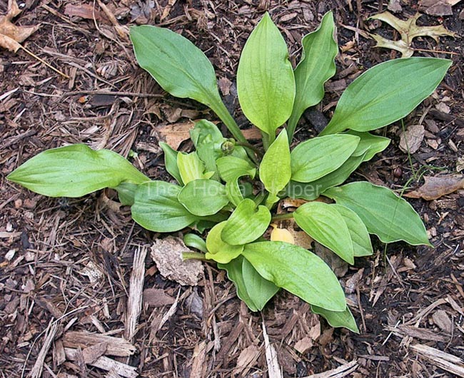This seedling of H. 'Golden Hawk' was registered by Dr. Jim and Jill Wilkins of Michigan in 1995. It forms a small size mound of elliptic shaped foliage with lavender flowers in August.