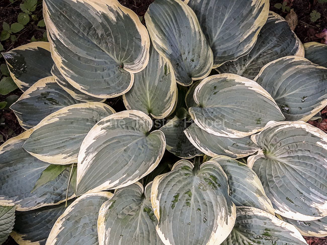 white marginal variegation. The leaves have a slightly wavy margin and a heart