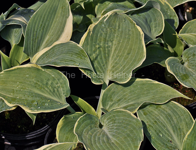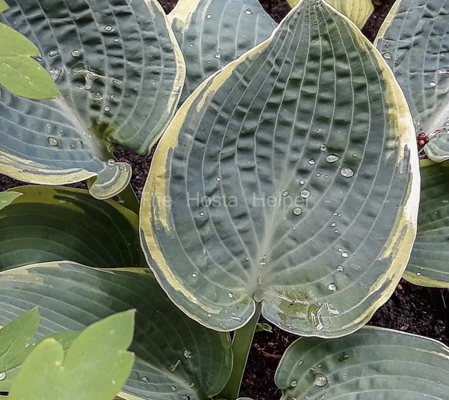 easily be mistaken for a gold-edged sport of 'Blue Dimples'.