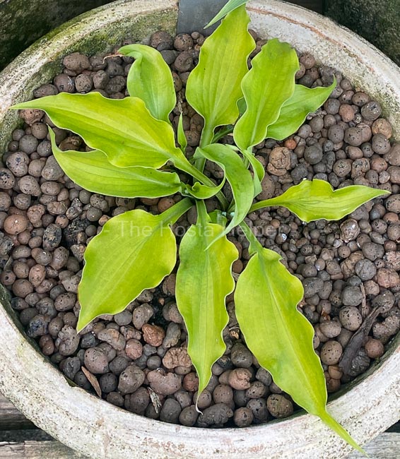 Its leaves are yellow, ovate, moderately wavy with a slightly