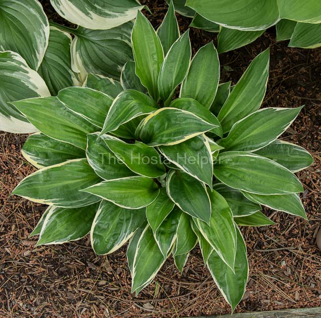dark green foliage that has a very thin pure white marginal variegation. The