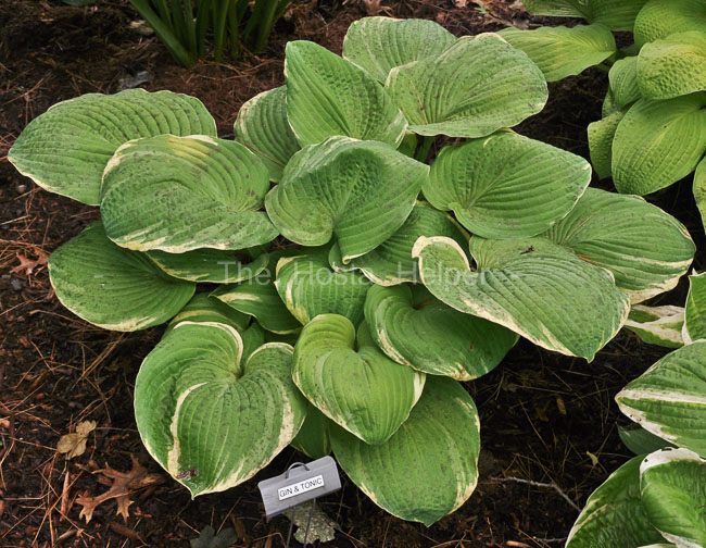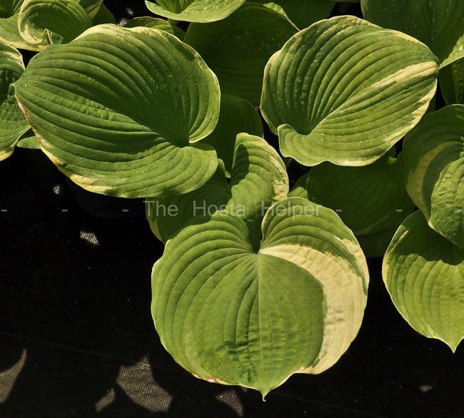has round, rugose, chartreuse leaves with a narrow yellowish white margin."