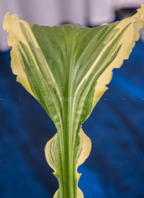 The New Encyclopedia of Hostas by Diana Grenfell (2009) states: "The leaves can be rather flaccid. unstable variegation can produce streaking into the center of the blade and has now produced a streaked form...a superb, distinct, recent introduction...A dramatically arching, serrated leaf accentuated by an exaggeratedly twisted tip."