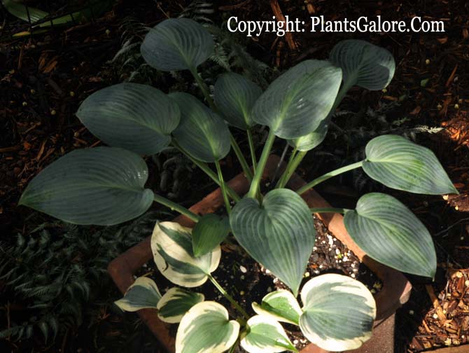 Although this plant was labeled with the name shown above, the blue-green hosta is almost certainly H. 'Goldbrook Glimmer'.