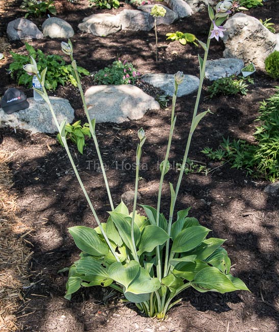 This plant was labeled as 'Glen Eyeful' but we could find nothing on a hosta of that name. However, there is one called 'Glen Eyeful Tower' which fits the description of the plant shown above. Perhaps it is a case of mislabeling.