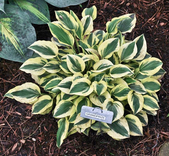 H. 'Grand Prize', "Walters Gardens registered this wide-margined sport of 'Grand Tiara' in 1998. Since it is slightly stoloniferous (Mr PGC -