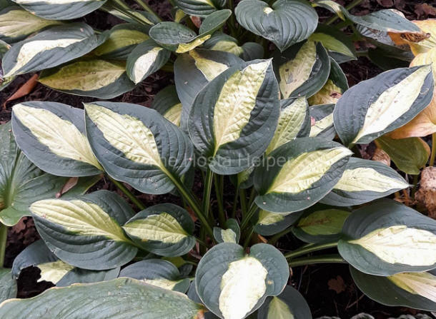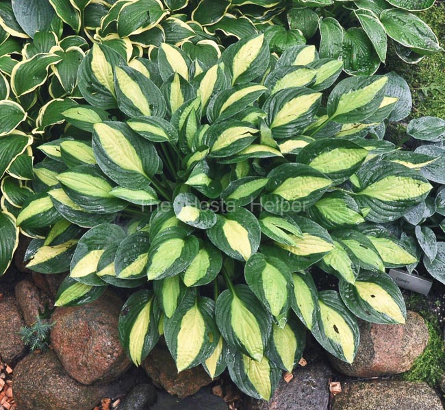 16 inches high by 30 inches wide, this cultivar has ovate to
