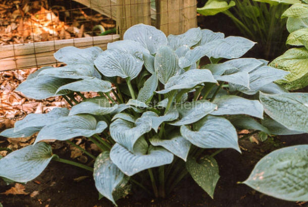blue-green foliage. Pale lavender flowers bloom from late July into August on purple dotted scapes.