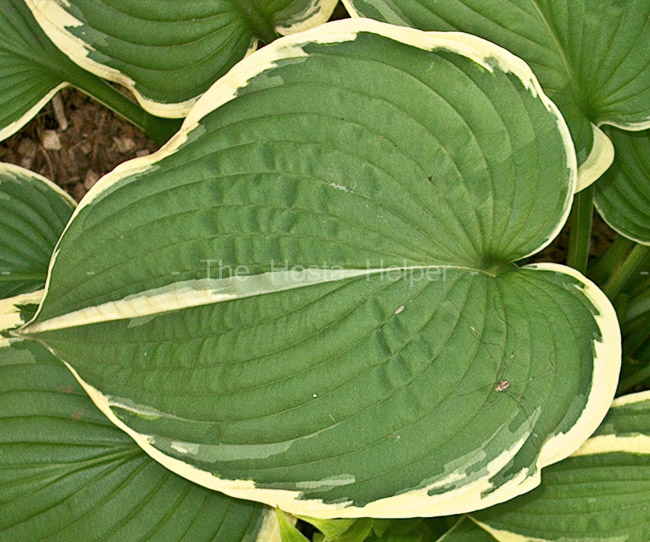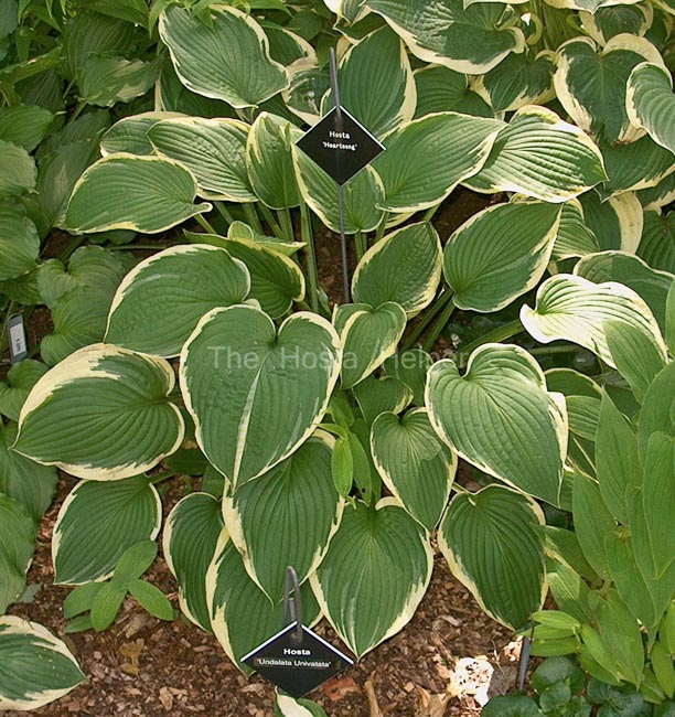Walters Gardens, Inc. of Michigan registered this sport of H. 'Candy Hearts' in 1984. It forms a large size (19 inches high) mound of white margined foliage and has pale lavender flowers in July.