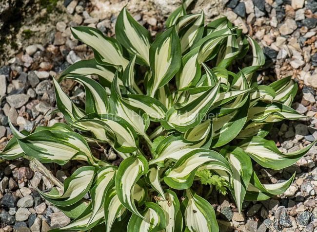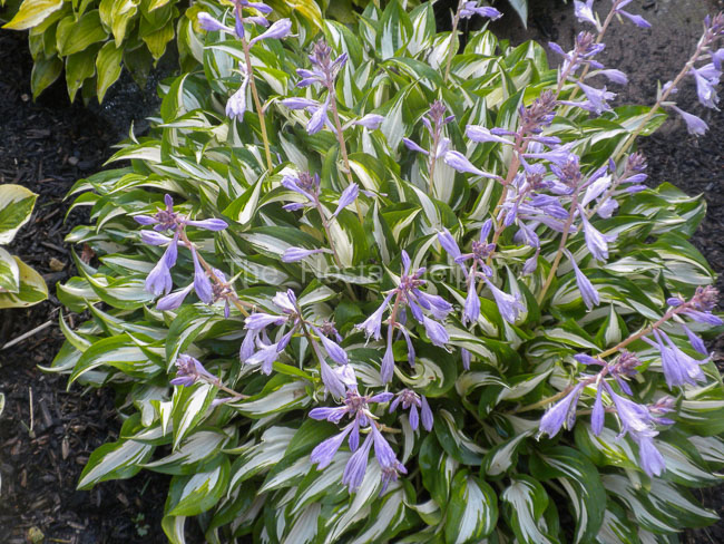 centered, lanceolate and twisted leaves. 'Hideout' bears pale purple flowers in July.