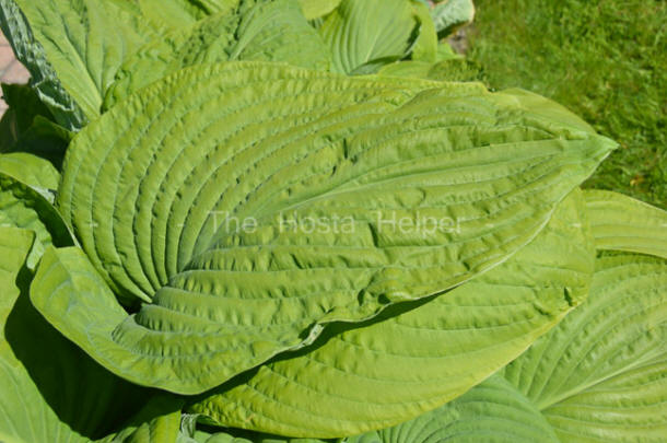 This cultivar is a giant size hosta with slightly cupped, corrugated, light green colored leaves. It is a hybrid of H. 'Arch Duke' x (possibly) H. 'Jurassic Park'. This non-registered cultivar was originated in 2014 by Ronny Van Keer of Belgium.