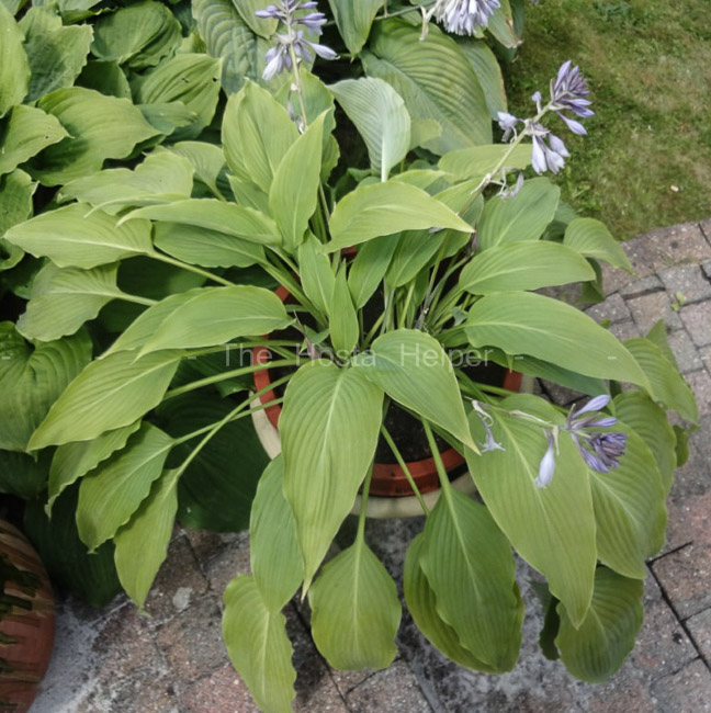 Originated in 2014 by Ronny Van Keer of Belgium, this non-registered cultivar is a hybrid of H. 'Empress Wu' × H. 'Mikawa-no-Yuki'. It is a large to giant size hosta with green foliage. It bears lilac colored flowers.