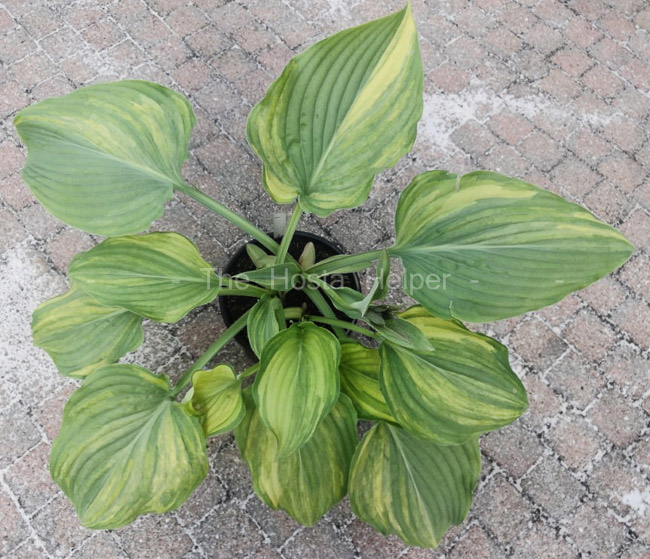Originated in 2014 by Ronny Van Keer of Belgium, this non-registered cultivar is a seedling of H. 'Justice' × H. 'Arch Duke'. It is a large to giant size, green hosta with creamy white streaked variegation. The leaves have wavy edges.