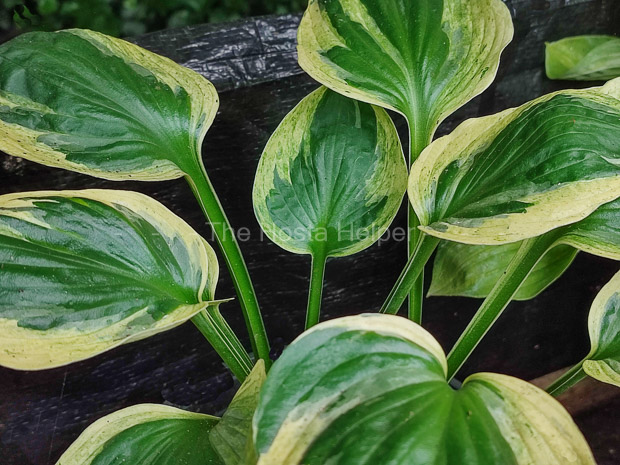 leaves are lightly cupped, ovate and slightly shiny on top. It produces lavender flowers