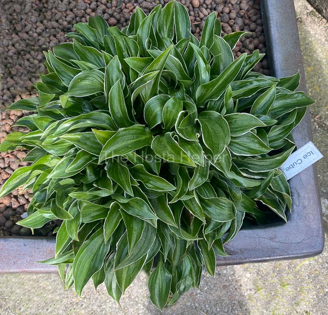 has shiny green leaves with white marginal variegation. This miniature size (5 inches high by 19