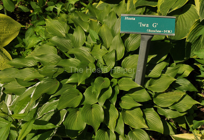 According to The Hostapedia by Mark Zilis (2009), "H. 'Iwa G' = H. longipes 'Iwa Soules'...Normally "Iwa G" would just be short for "Iwa Gibōshi", the Japanese common name for H. longipes. In this case, however, Van Wade of Wade and Gatton Nursery (Closed 2019) of Ohio credits this plant to "Soules", i.e. Marge Soules. Marge imported a form of H. longipes from Japan, which was dubbed 'Iwa Soules' by Schmid (1991)."