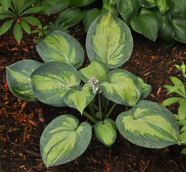 leaf cream center, a wide green edge and a thick cupped round leaf. |