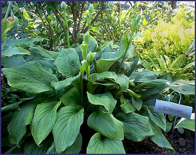 This hybrid of H. 'Formal Attire' × H. 'Ginko Craig' is a non-registered cultivar from Ron Livingston of Michigan. It forms a medium size plant with green foliage that is slightly wavy. Purple flowers bloom in August.