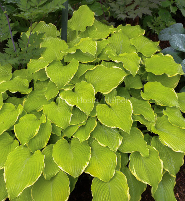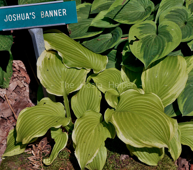 Kevin Walek (Hosta Registrar) in 2009. 'Joshua's Banner' starts the season with a chartreuse leaf having a narrow white