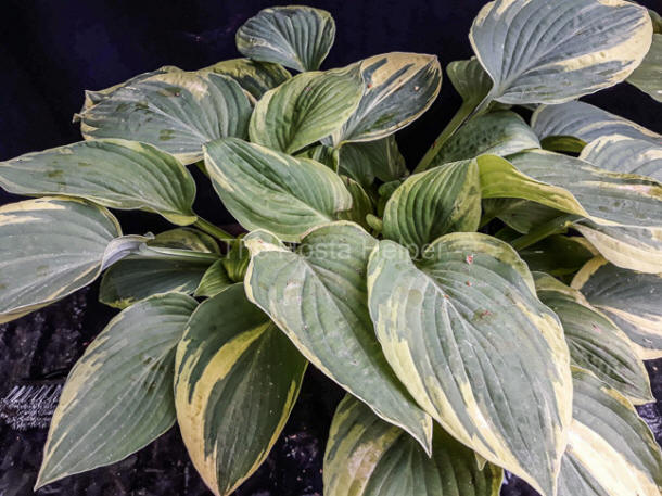 This cultivar is a hybrid of (H. 'Neat Splash' × H. 'Northern Halo') x H. 'Hadspen Blue' that was registered by Greg Johnson of Iowa in 2004. The medium size mound is about 14 inches high by 30 inches wide. It produces pale lavender flowers in July.