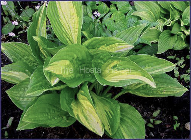 Ron Livingston of Michigan originated this non-registered cultivar of unidentified parentage. It is a medium size hosta with green foliage that has gold to white colored medial (center) variegation.